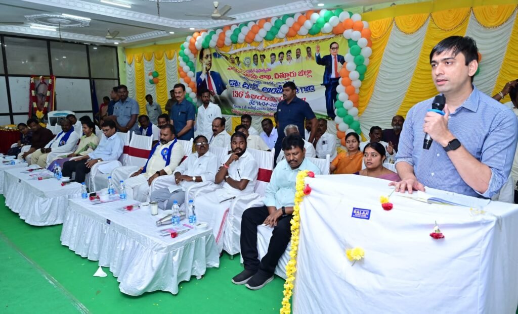 ప్రపంచ మేధావి, రాజ్యాంగ నిర్మాత డాక్టర్ బి.ఆర్. అంబేద్కర్ స్ఫూర్తితో ప్రతి దళిత బిడ్డ విద్యను అభ్యసించి రాజ్యాధికార దిశగా అడుగులు వేయాలని చిత్తూరు పార్లమెంట్ సభ్యుడు దగ్గుమల్లు ప్రసాదరావు, పూతలపట్టు ఎమ్మెల్యే మురళీమోహన్ పిలుపునిచ్చారు. అంబేద్కర్ కలను సాకారం చేయడం ద్వారా ఆయనకు నిజమైన నివాళి అర్పించినట్లవుతుందని పేర్కొన్నారు. అంబేద్కర్ జయంతి వేడుకలను జిల్లా సాంఘిక సంక్షేమ శాఖ ఆధ్వర్యంలో చిత్తూరులోని మెకానికల్ మైదానంలో ఘనంగా నిర్వహించారు. ఈ కార్యక్రమానికి ఎంపీ దగ్గుమల్లు ప్రసాదరావు ముఖ్య అతిథిగా హాజరుకాగా, ఎమ్మెల్యే మురళీమోహన్, జిల్లా కలెక్టర్ సుమిత్ కుమార్, చూడా చైర్పర్సన్ కటారి హేమలత తదితరులు పాల్గొన్నారు. ఈ సందర్భంగా మైదానంలో ఏర్పాటు చేసిన అంబేద్కర్ కాంస్య విగ్రహానికి పూలమాలలు వేసి నివాళులు అర్పించారు. అనంతరం నిర్వహించిన సమావేశంలో మాట్లాడిన నాయకులు అంబేద్కర్ విద్యను సామాజిక సాధికారతకు ప్రధాన ఆయుధంగా భావించిన మహానేత అని కొనియాడారు. “చదవండి, సంఘటితమవండి, పోరాడండి” అనే నినాదంతో అణగారిన వర్గాల్లో చైతన్యం నింపిన యోధుడని పేర్కొన్నారు. అంటరానితనం వంటి సామాజిక దురాచారాలపై జీవితాంతం పోరాడిన అంబేద్కర్, రాజ్యాంగ రూపకర్తగా ప్రతి పౌరునికి సమాన హక్కులు కల్పించారని తెలిపారు. ఎస్సీ, ఎస్టీల కోసం రిజర్వేషన్లు మరియు రక్షణ చట్టాలను తీసుకువచ్చిన దళిత బాంధవుడని కొనియాడారు. ఈ సందర్భంగా ఆంధ్రప్రదేశ్ ముఖ్యమంత్రి నారా చంద్రబాబు నాయుడు సంకల్పాన్ని ప్రస్తావిస్తూ ఎస్సీ, ఎస్టీ వర్గాల నుంచి పారిశ్రామిక వేత్తలు తయారవ్వాలని, ప్రతి ఇంటి నుంచి అభివృద్ధి సాధించాలని పేర్కొన్నారు. ప్రభుత్వం తీసుకుంటున్న సంస్కరణలు ఈ దిశగా ఉపయోగపడతాయని తెలిపారు. జిల్లా కలెక్టర్ సుమిత్ కుమార్ మాట్లాడుతూ సామాజిక రుగ్మతలను నిర్మూలించడంలో అంబేద్కర్ కృషి అమోఘమని అన్నారు. ఆయన చూపిన మార్గంలో ఎస్సీ, ఎస్టీలు తమ హక్కులను సద్వినియోగం చేసుకొని భవిష్యత్తును నిర్మించుకోవాలని సూచించారు. కార్యక్రమంలో సాంస్కృతిక ప్రదర్శనలు ఆకట్టుకున్నాయి. డీఆర్డీఏ ఆధ్వర్యంలో 2025-26 సంవత్సరానికి సంబంధించిన 47 స్వయం సహాయక సంఘాలకు పిఎం అజయ్ పథకం కింద ఎస్సీ కార్పొరేషన్ ద్వారా మంజూరైన వడ్డీ లేని రుణాలుగా 47 లక్షల రూపాయల చెక్కులను లబ్ధిదారులకు అందజేశారు.ఈ కార్యక్రమంలో డీఆర్ఓ మోహన్ కుమార్, ఆర్డీవో శ్రీనివాసులు, డీఆర్డీపీడీ శ్రీదేవి, మాల ఫైనాన్స్ కార్పొరేషన్ డైరెక్టర్లు పి. యుగంధర్, బాబు, వివిధ సంఘాల నాయకులు మరియు ప్రజాప్రతినిధులు పాల్గొన్నారు.