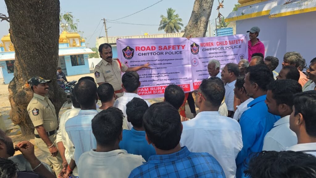 చిత్తూరుజిల్లా గుడుపల్లి మండలంలోని గుత్తార్లపల్లి గ్రామంలో ఆదివారం పోలీసుల ఆధ్వర్యంలో ప్రజలకు వివిధ అంశాలపై అవగాహన కార్యక్రమం నిర్వహించారు. కుప్పం రూరల్ సర్కిల్ ఇన్స్పెక్టర్ మల్లేష్ యాదవ్ గ్రామాన్ని సందర్శించి స్థానికులతో సమావేశమై పలు సామాజిక సమస్యలపై అవగాహన కల్పించారు. ఈ సందర్భంగా ‘ధైర్య స్పర్శ’ కార్యక్రమం లక్ష్యాలు, మహిళలు, బాలికల రక్షణకు ప్రభుత్వం చేపడుతున్న చర్యలను వివరించారు. బాల్య వివాహాల నివారణపై ప్రజలకు అవగాహన కల్పిస్తూ, చిన్న వయసులో జరిగే వివాహాలు పిల్లల భవిష్యత్తుపై తీవ్ర ప్రభావం చూపుతాయని తెలిపారు. అలాగే రోడ్డు భద్రతకు సంబంధించి వాహనదారులు పాటించాల్సిన నియమాలను వివరించి, హెల్మెట్ వినియోగం, వేగ నియంత్రణ వంటి అంశాలపై సూచనలు ఇచ్చారు. సైబర్ నేరాలు పెరుగుతున్న నేపథ్యంలో ప్రజలు అపరిచిత ఫోన్ కాల్స్, సందేశాలు, ఆన్లైన్ లావాదేవీల విషయంలో జాగ్రత్తగా ఉండాలని సూచించారు. డ్రగ్స్ వినియోగం వల్ల కలిగే దుష్పరిణామాలు, యువతపై పడే ప్రతికూల ప్రభావాలను వివరించారు. పిల్లలపై జరిగే లైంగిక దాడులను నిరోధించేందుకు అమలులో ఉన్న పోక్సో చట్టం గురించి కూడా వివరించి, అనుమానాస్పద సంఘటనలు కనిపించినప్పుడు వెంటనే పోలీసులకు సమాచారం అందించాలని కోరారు. ఇళ్లలో దొంగతనాలు జరగకుండా ప్రజలు తీసుకోవాల్సిన ముందస్తు జాగ్రత్తలను తెలియజేస్తూ గ్రామస్తులు అప్రమత్తంగా ఉండాలని సూచించారు. ఈ కార్యక్రమంలో గ్రామ ప్రజలు పాల్గొని తమ సందేహాలను అడిగి తెలుసుకున్నారు.