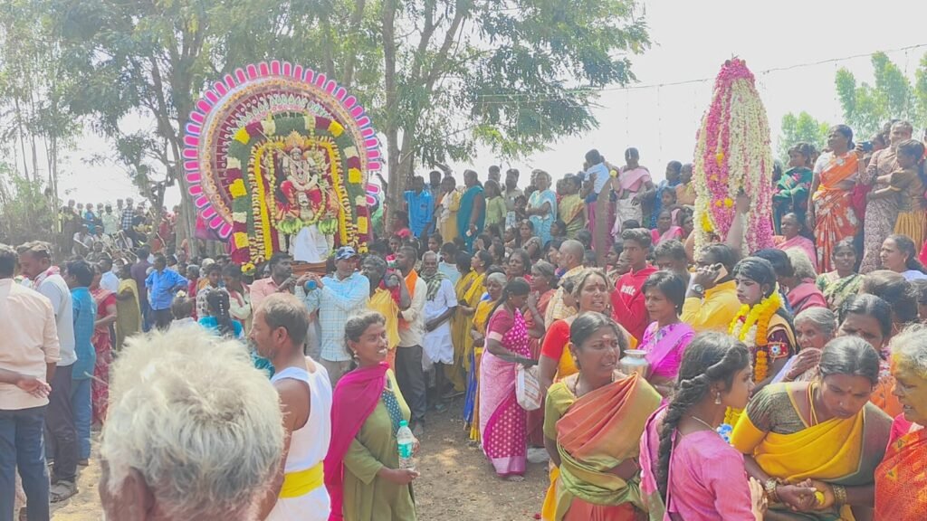 కుప్పం నియోజకవర్గం శాంతిపురం మండలం బోయన పల్లిలో మహాశివరాత్రి పురస్కరించుకుని అమావాస్య రోజున అంగాల పరమేశ్వరి అమ్మవారి జాతర ఘనంగా నిర్వహించారు. ఈ సందర్భంగా ఆలయ ధర్మకర్త చంద్రప్ప మాట్లాడుతూ… తమ పూర్వీకుల నుండి తరతరాలుగా వస్తున్న ఆచారం ప్రకారం జాతర ఘనంగా జరుగుతుందని తెలిపారు. గ్రామ స్మశానంలో భారీ అమ్మవారి మట్టి ప్రతిమ ను ఏర్పాటు చేసి, ఆలయం నుండి ఉత్సవ విగ్రహాన్ని పుష్పాలతో అలంకరించి డప్పు, మంగళ వాయిద్యాలతో మహిళ భక్తులు పూపునకాలతో ఊగుతూ అంగరంగ వైభవంగా స్మశానకొల్లకు తీసుకెళ్లారు. స్మశానంలో అమ్మ వారి ప్రతిమకు జంతు బలులు ఇచ్చి రక్తపు అన్నం చేసుకుని పైకి విసరడం జరిగింది. చల్లిన రక్తపు అన్నాన్ని భక్తులు పట్టుకుని తమ ఇళ్లకు తీసుకెళ్లడంతో దోషాలు తొలగుతాయని వారి విశ్వాసం. అమ్మవారి మట్టి ప్రతిమ ఎదురుగా చేతులు చాచి కూర్చున్న భక్తులకు పూజారులు కొరడాతో చెల్లు మనిపిచ్చరు దెబ్బలు తీర్చారు. కొరడాతో దెబ్బలు తినడంతో దోషాలు పోతాయని భక్తుల నమ్మకం. కర్ణాటక, తమిళనాడు, ఆంధ్రా నుండి పెద్ద ఎత్తున భక్తులు వచ్చి మొక్కలు చెల్లించుకున్నారు.