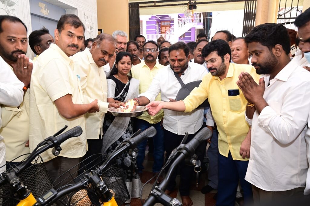 పర్యావరణ కాలుష్యాన్ని నియంత్రించి ఆరోగ్యకరమైన జీవన విధానాన్ని ప్రోత్సహించాలనే లక్ష్యంతో కుప్పం పట్టణంలోని శ్రీ ప్రియ నర్సింగ్ హోమ్ ఆధ్వర్యంలో సిబ్బందికి ఈ సైకిళ్లను పంపిణీ చేశారు. బుధవారం నిర్వహించిన ఈ కార్యక్రమంలో శ్రీ ప్రియ నర్సింగ్ హోమ్ అధినేత, కుప్పం పట్టణ మాజీ అధ్యక్షులు డాక్టర్ సుధీర్ తన సిబ్బందికి సుమారు 100 ఈ సైకిళ్లను అందజేశారు. రాష్ట్ర ముఖ్యమంత్రి నారా చంద్రబాబు నాయుడు ఆలోచనల మేరకు పర్యావరణ పరిరక్షణ కోసం సైకిల్ వినియోగాన్ని ప్రోత్సహించే విధంగా ఈ సైకిళ్ల పంపిణీ చేపట్టినట్టు తెలిపారు. ఇప్పటికే కుప్పం నియోజకవర్గంలో ఒకేసారి సుమారు 5555 సైకిళ్లను పంపిణీ చేసి వరల్డ్ గిన్నిస్ బుక్లో స్థానం సంపాదించిన విషయాన్ని ఈ సందర్భంగా గుర్తు చేశారు. అదే స్ఫూర్తితో శ్రీ ప్రియ నర్సింగ్ హోమ్ సిబ్బందికి సైకిళ్లను అందజేయడం జరిగిందన్నారు. ఈ కార్యక్రమానికి ముఖ్య అతిథులుగా ఎమ్మెల్సీ కంచర్ల శ్రీకాంత్, ఏపీఎస్ ఆర్టీసీ వైస్ చైర్మన్ పి.ఎస్. మునిరత్నం, పీఎంకే చైర్మన్ డాక్టర్ సురేష్ బాబు, టిటిడి డైరెక్టర్ శాంతారామ్ విచ్చేశారు. ఈ సందర్భంగా ఈ సైకిళ్లతో కుప్పం పట్టణంలో ప్రత్యేక ర్యాలీ నిర్వహించారు. ఈ ర్యాలీని ముఖ్య అతిథులు జండా ఊపి ప్రారంభించగా, ఈ కార్యక్రమాన్ని నిర్వహించే అవకాశం కల్పించిన రాష్ట్ర ముఖ్యమంత్రి నారా చంద్రబాబు నాయుడు, ఉప ముఖ్యమంత్రి కొణిదల పవన్ కళ్యాణ్ కు, యువ నాయకుడు మంత్రి నారా లోకేష్కు డాక్టర్ సుధీర్ ప్రత్యేక కృతజ్ఞతలు తెలిపారు. ఈ కార్యక్రమంలో కుప్పం పురపాలక సంఘం అధ్యక్షులు సెల్వ రాజు, పట్టణ టిడిపి అధ్యక్షులు కాణిపాకం వెంకటేష్, బెస్త కుల కార్పొరేషన్ డైరెక్టర్ తిరుమగళ్, నియోజకవర్గ మైనారిటీ అధ్యక్షులు జాకీర్ అహ్మద్, క్లస్టర్ ఇంచార్జీలు సోము, కన్నన్, కోక్లస్టర్ శ్యాంసుందర్, మాజీ ఏఎంసీ చైర్మన్ సత్యేంద్ర శేఖర్, నాయకులు లోకేష్ బాబు, కదిరప్ప, ప్రమోద్ తదితర నాయకులతోపాటు పార్టీ కార్యకర్తలు, శ్రీ ప్రియ నర్సింగ్ హోమ్ మేనేజింగ్ డైరెక్టర్ శ్రీ ప్రియ, ఆసుపత్రి సిబ్బంది పెద్ద ఎత్తున పాల్గొన్నారు.